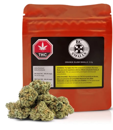 Meet Orange Zlush by BC Smalls—an indica-dominant cultivar born from the lineage of Orange Fanta and Zlushiez. Its vibrant lime-green buds are adorned with bright-orange pistils and a frosty coating of crystalline trichomes. This standout flower boasts an aromatic profile of zesty citrus, creamy sweetness, and a hint of tropical fruit, with flavours that mirror these notes in a smooth, bubble-like harmony. Terpenes include farnesene, linalool, and limonene.