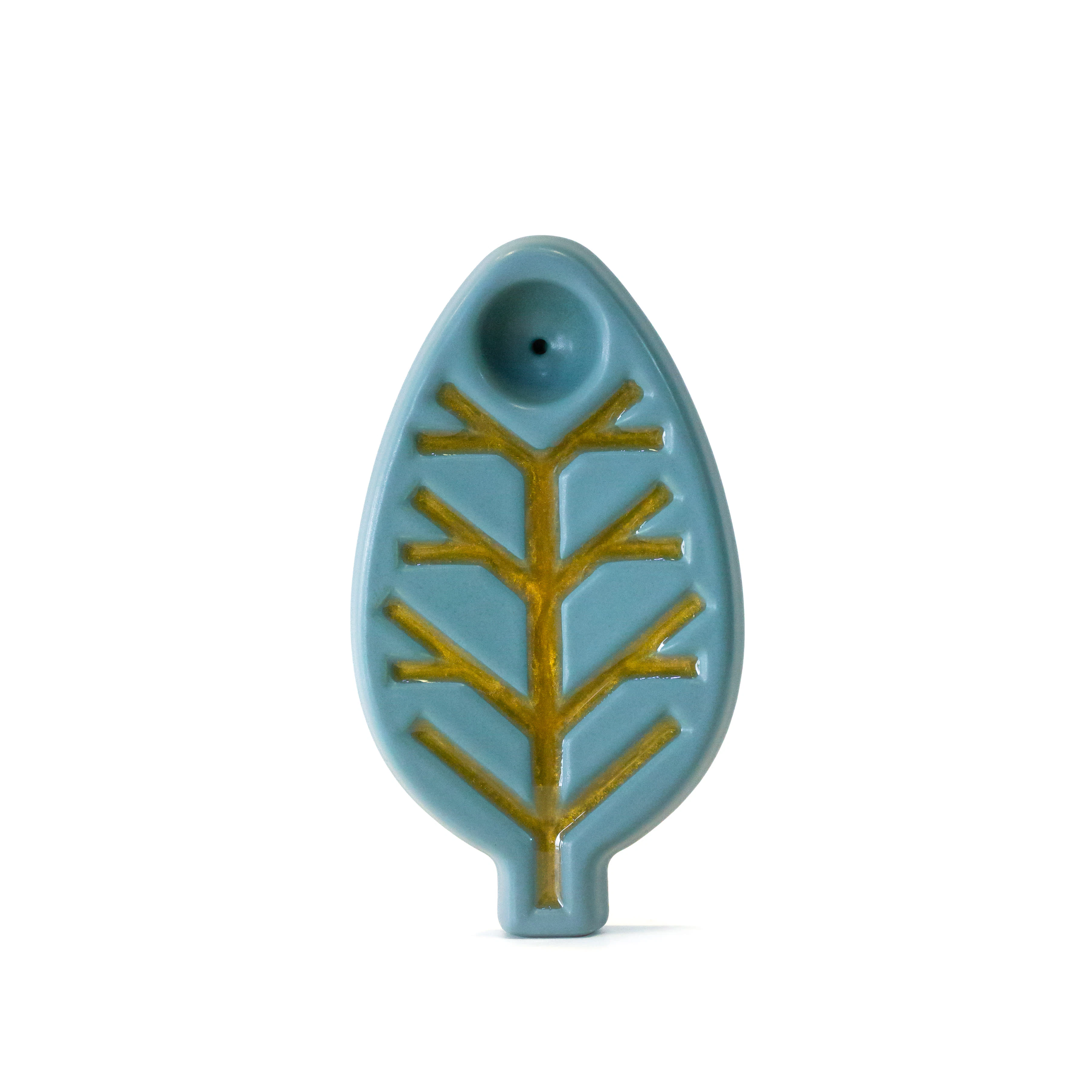 Oak and Earth brings natural elements into their work. The leaf pipe embodies this perfectly. It has a ceramic body with an epoxy accent that resembles wood. The simple shape sits easily in the palm of your hand but also ensures a smooth hit with smoke traveling 4.5" between bowl and stem